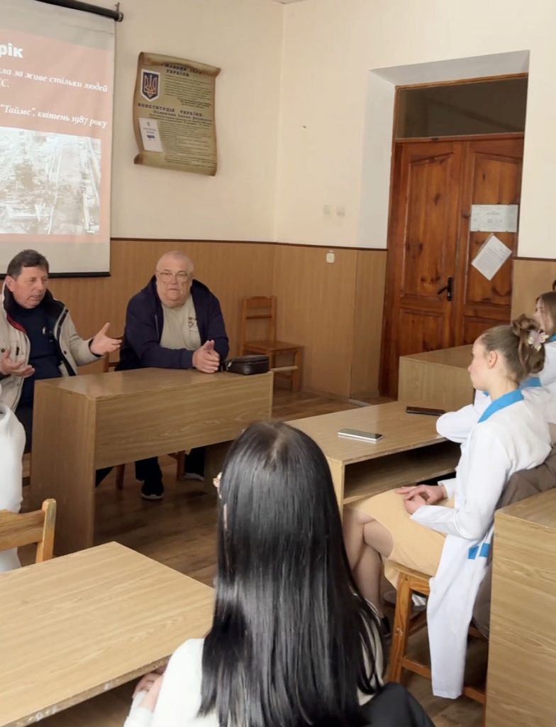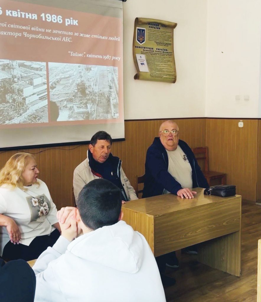 Студенти 35-ї Ф-групи провели тематичну зустріч «Чорнобиль — катастрофа ХХ століття». На захід були запрошені ліквідатори аварії на ЧАЕС — Сергій Володимирович Рагузин та Василь Васильович Цихоня. Вони поділилися зі студентами змістовними спогадами про участь у ліквідації наслідків катастрофи, розповіли про складні умови роботи, ризики для життя та силу людської відданості.